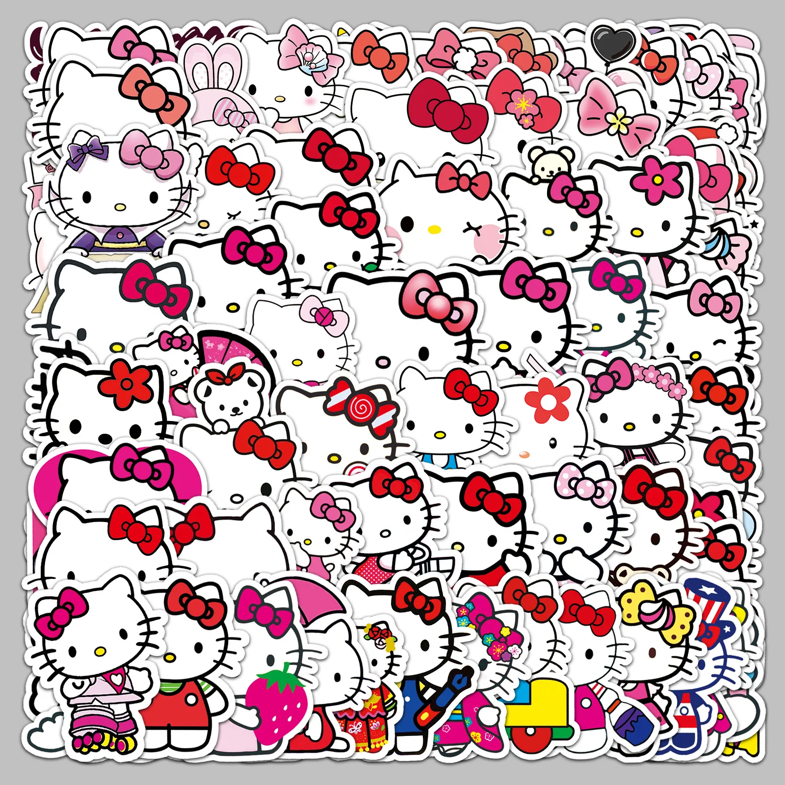 100Pcs Anime Miniso Sanrio Hellokitty Stickers Cartoon Cute Decorative Waterproof Notebook Sweet Stickers Girl's Gift Toy