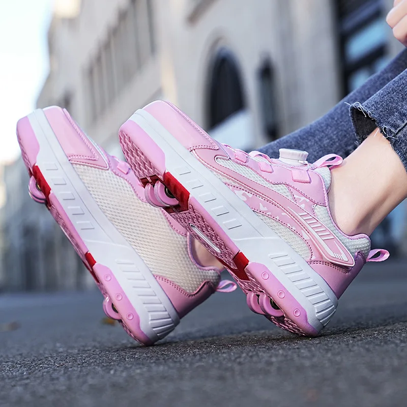 4 Wheels Roller Skate Deformation Shoes 2025 New Fashion Casual Kids Boys Girls Mesh Footwear Gift Game Boots Children Sneakers