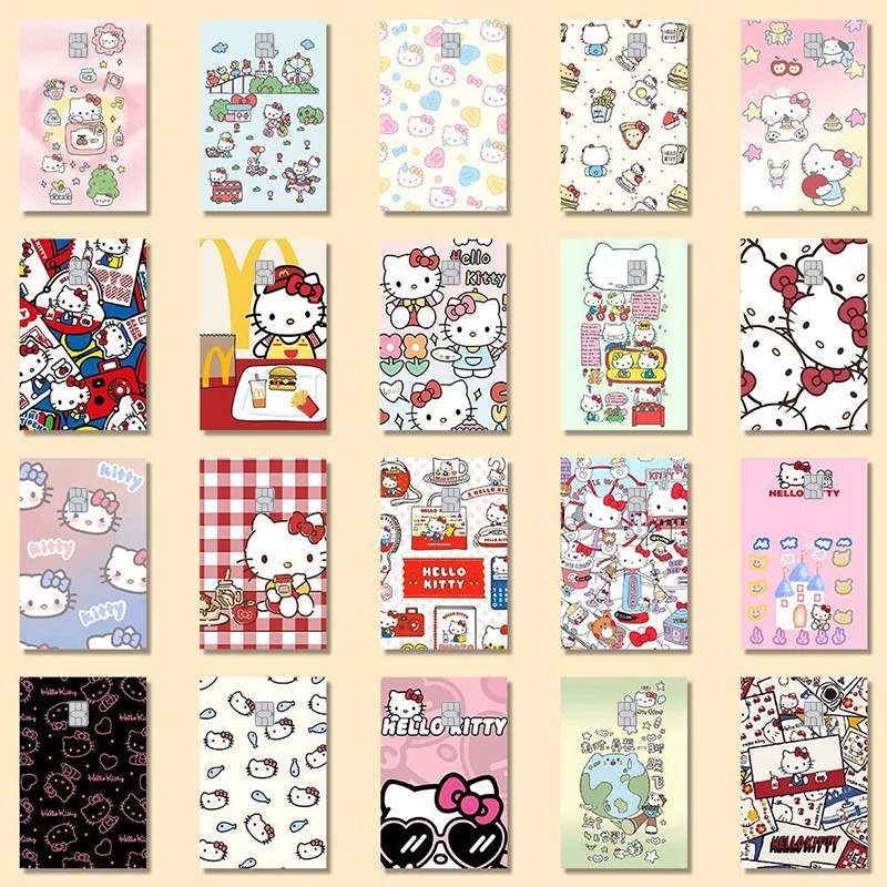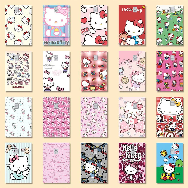 New Hello Kitty 20pcs Credit Debit Card Stickers Anime Fashion Girls Boys Mate PVC Film Tape Skin for Large Small No Chip Gifts