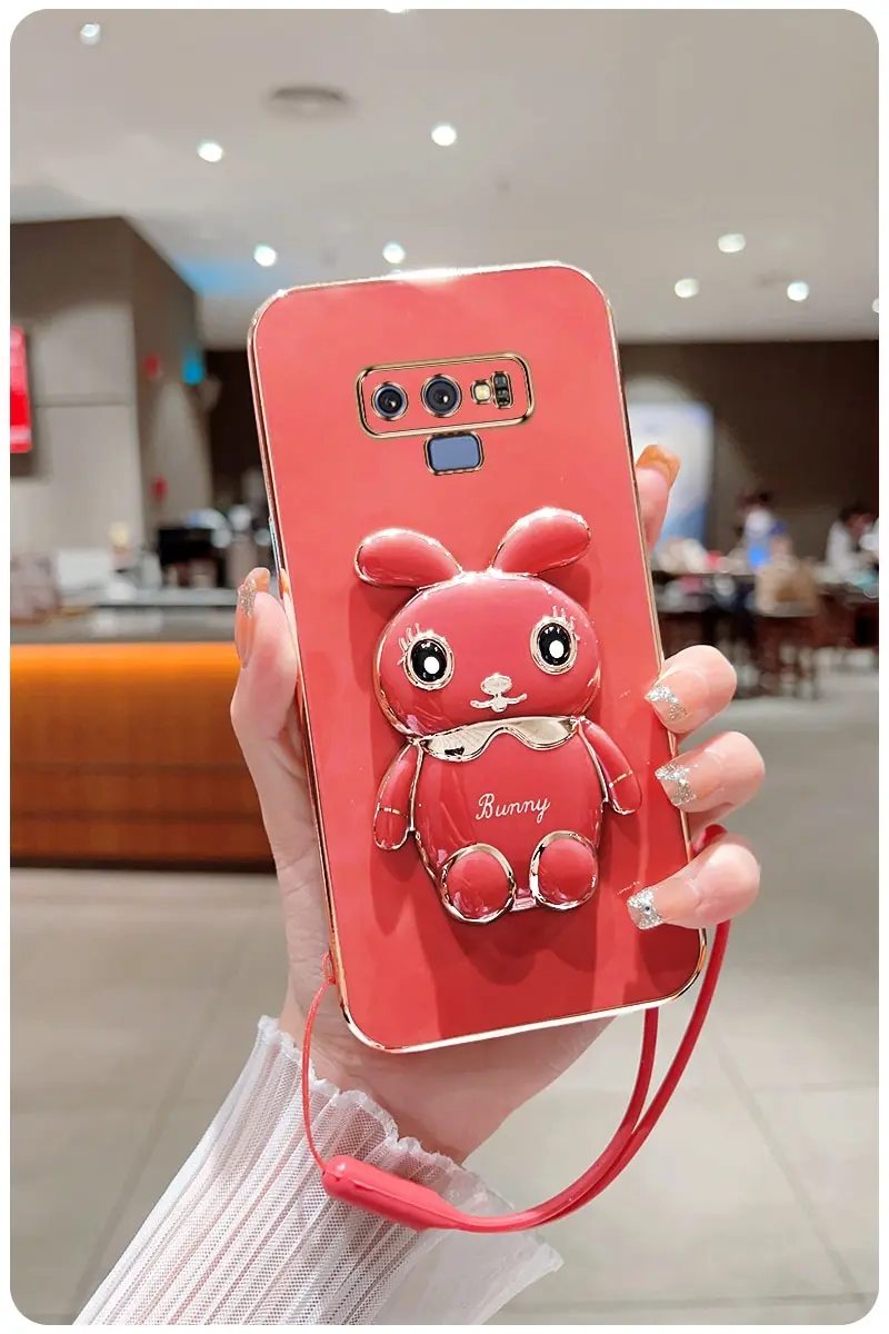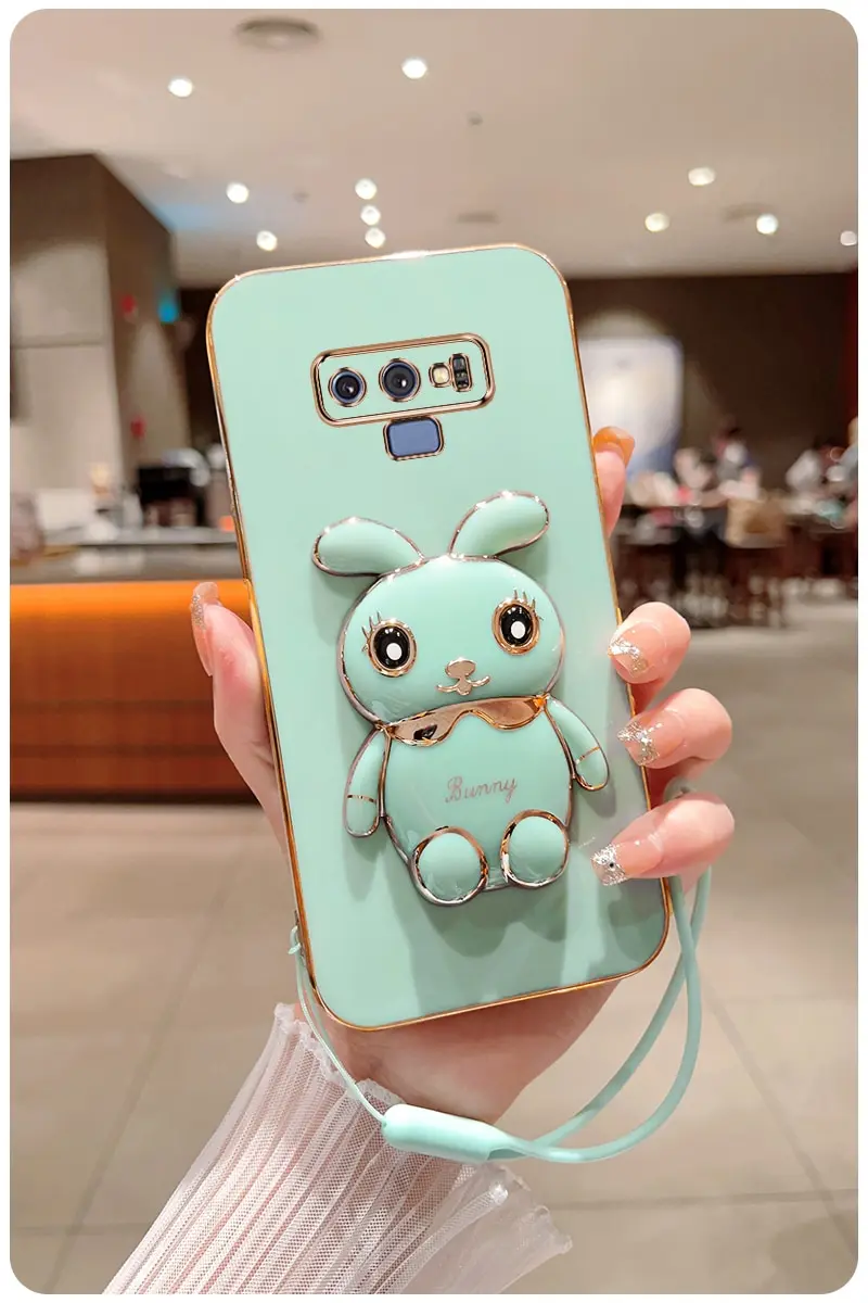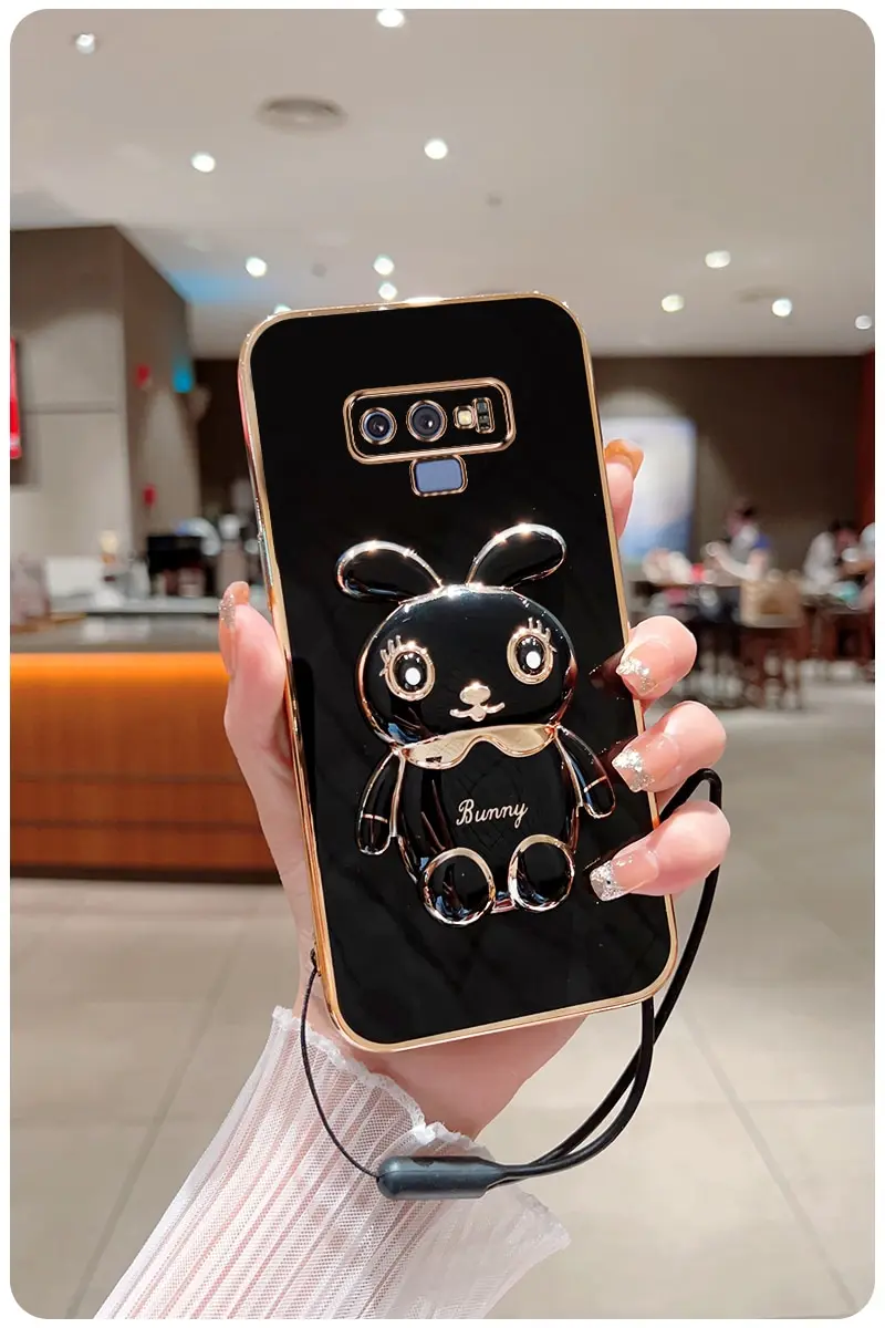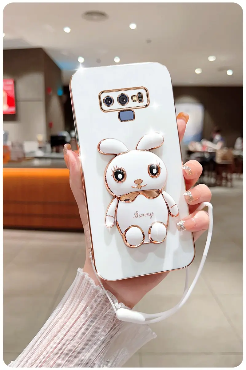 Phone Case For Samsung Galaxy Note 9 Luxury Plating Square Rabbit Holder With Landyard Phone Case Cover