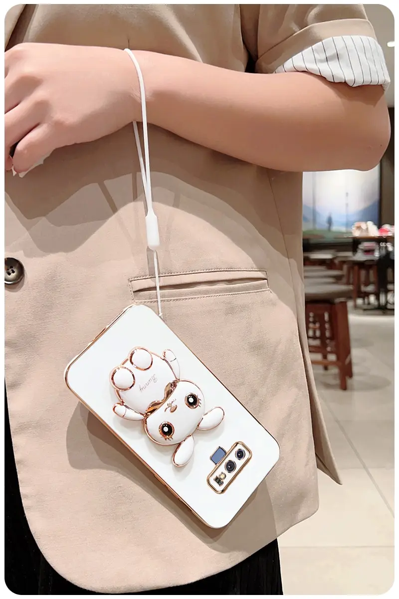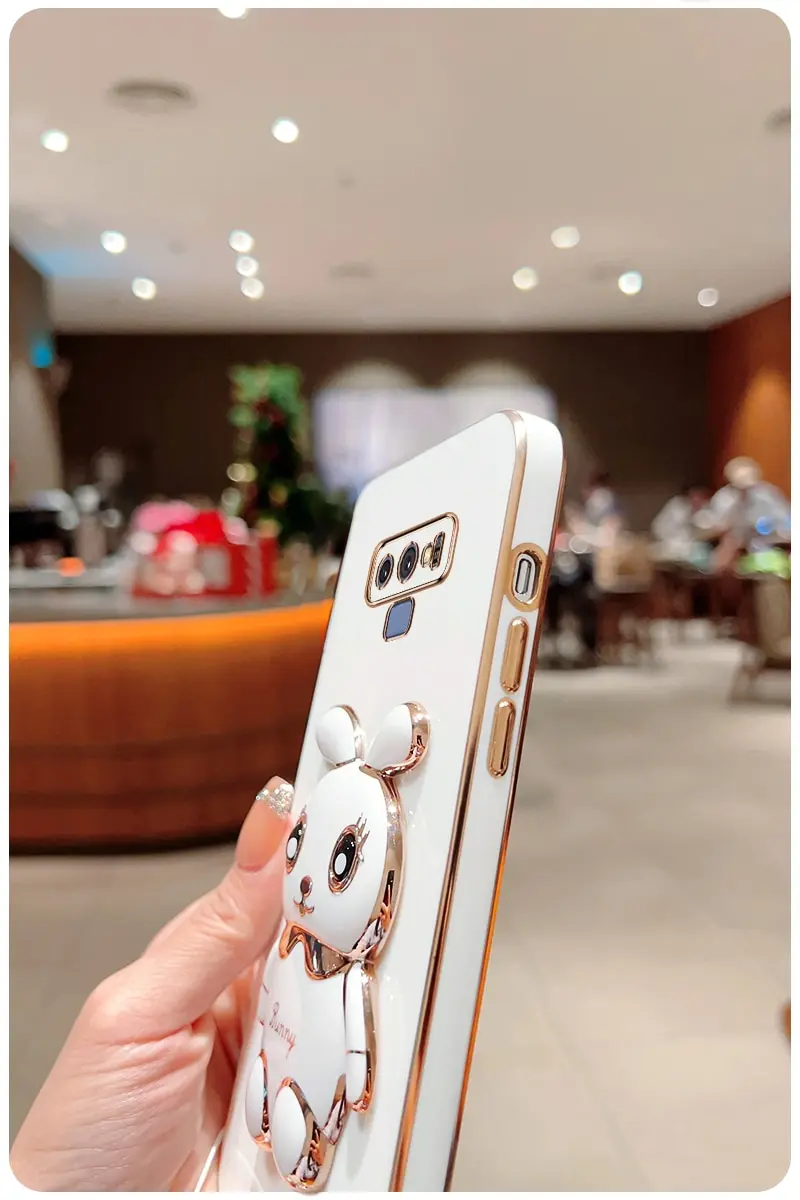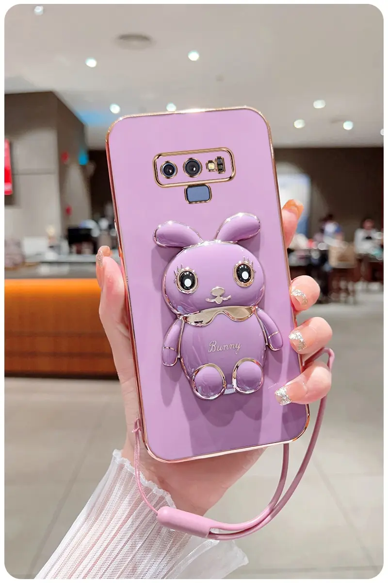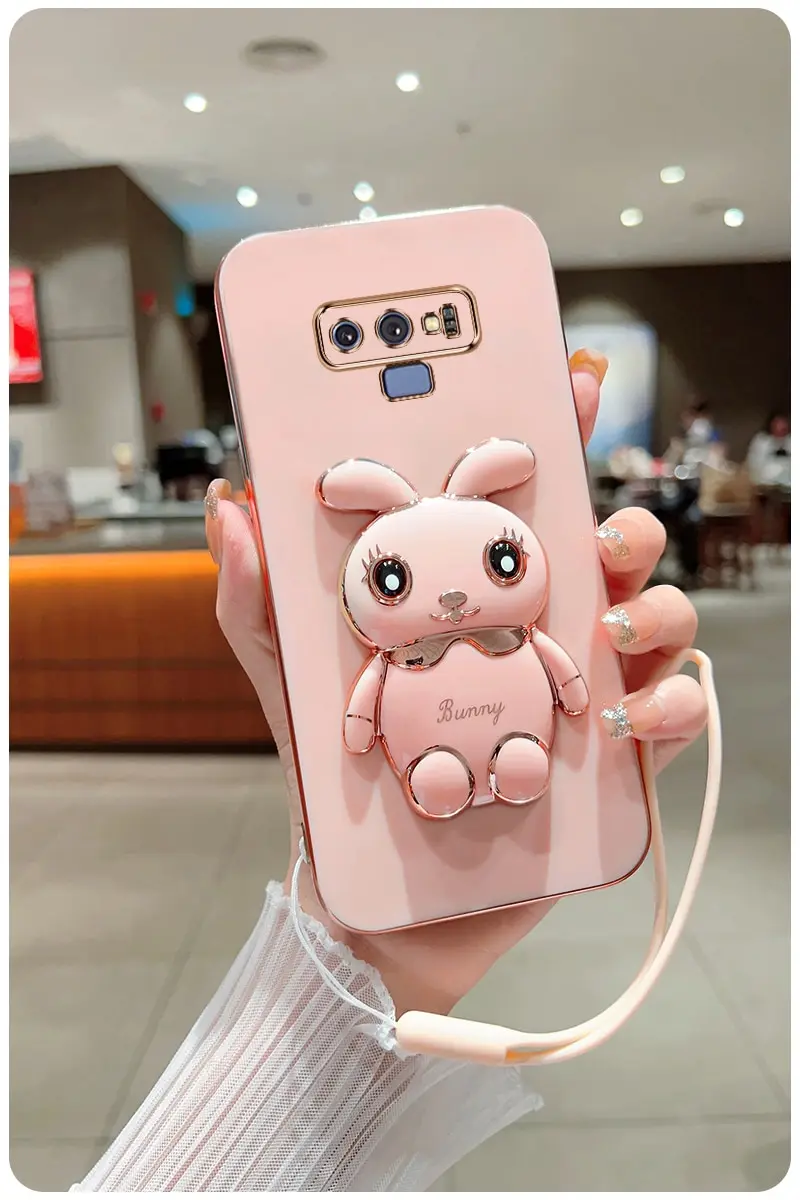 Phone Case For Samsung Galaxy Note 9 Luxury Plating Square Rabbit Holder With Landyard Phone Case Cover