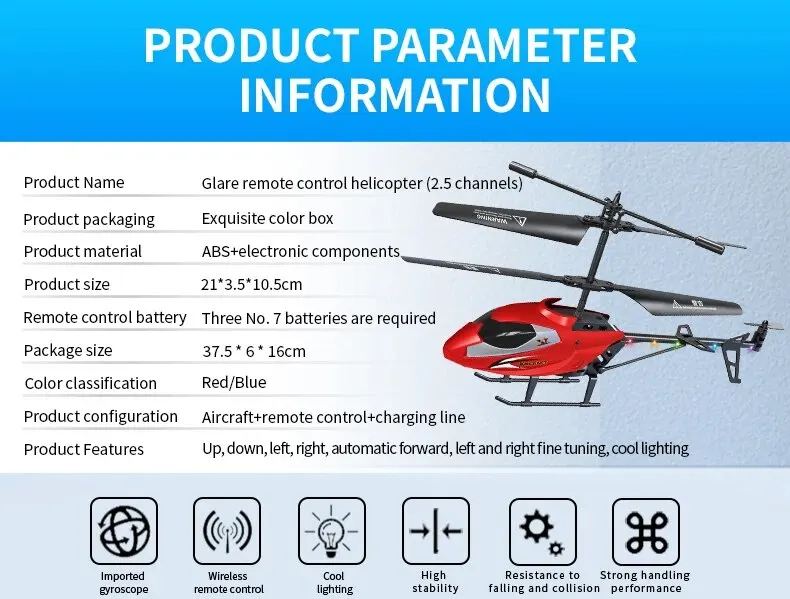 Remote Control Helicopter, Aircraft with Altitude Hold, One Key Take Off/Landing, 3.5 Channel, Gyro Stabilizer